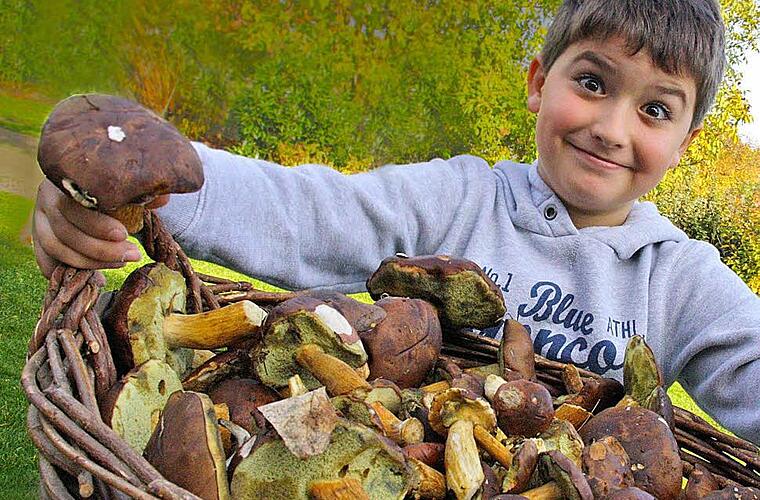 Marius Riedel hat einen essbaren Schatz gefunden: Leckere Steinpilze und Maronen-Röhrlinge in ungewohnter Pracht und Masse. Nicht nur der Achtjährige, sondern alle Pilzfreunde erleben derzeit eine Superzeit.