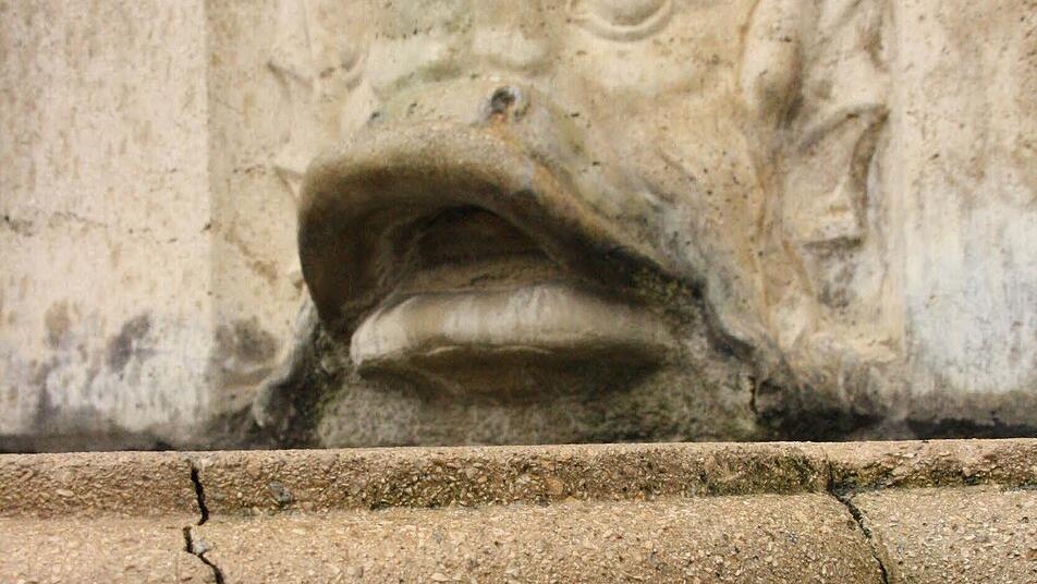 Auch für den Laien deutlich sichtbar sind die Risse, die sich an dem in die Jahre gekommenen Brunnen entlangziehen. Klaus Rützel: "Die Frage wird sein, ob das Brunnenbecken zu erhalten ist."