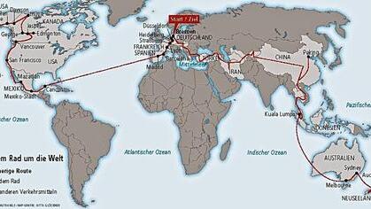 Im Herbst 2011 sind sie in ihrem Studienort Bremen losgeradelt, dann ging es einmal um die Welt durch 30 Länder: Deutschland, Österreich, Slowakei, Ungarn, Kroatien, Serbien, Mazedonien, Griechenland, Türkei, Georgien, Armenien, Iran, Turkmenistan, Usbekistan, Kirgisien, China, Laos, Thailand, Kambodscha, Malaysia, Singapur, Indonesien, Australien, Neuseeland, Tonga, USA, Kanada, Mexiko, Spanien, Frankreich und wieder Deutschland. Am Mittwoch sind die Kitzingerin Annika Wachter (30) und Roberto Gallegos Ricci (33) – nach der Hochzeit im April dieses Jahres inzwischen als Ehepaar – wieder am Ausgangsort in Bremen eingetroffen.
