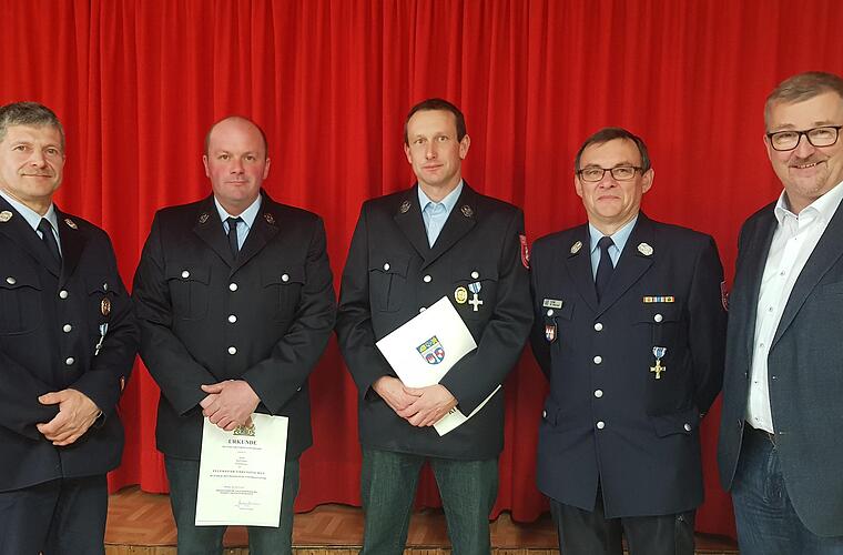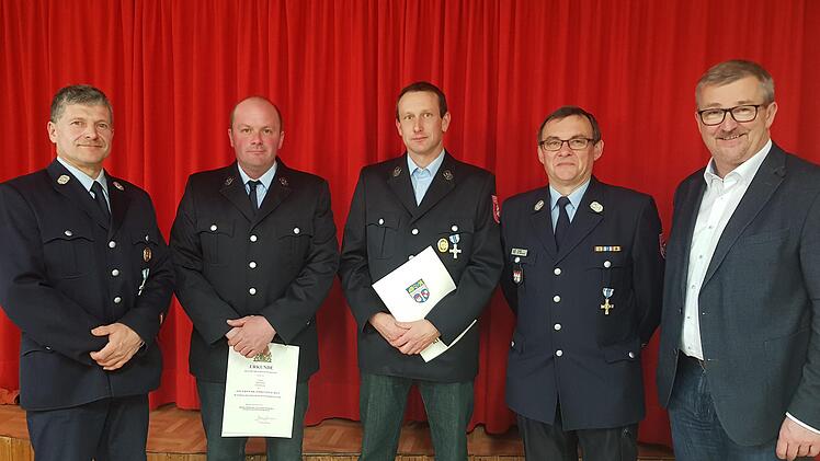 Ehrungen für 25 Jahre aktive Dienstzeit für Harald Mahr und Ralf Mahr gab es bei der Feuerwehr Ebersbrunn. Die Ehrungen mit Urkunde übernahm Kreisbrandmeister Bernhard Werner, wie die Feuerwehr mitteilte. Außerdem wurde Ralf Mahr zum vierten Mal zum zweiten Kommandanten gewählt. Reinhold Hack wurde zum fünften Mal zum ersten Kommandanten gewählt.