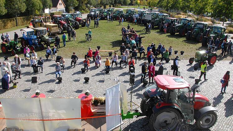 Den Festgottesdienst zelebrierten Kerstin Baderschneider und der katholische Pfarrer Gerhard Spöckl. "So etwas mit so vielen Schleppern habe ich noch nie erlebt", verriet Gerhard Spöckl und er fand den Erntedank-Sonntag als bestens passenden Termin für die Feier. Er betonte, dass Gott den Menschen die Schöpfung anvertraut habe und die Menschen sollten verantwortungsvoll damit umgehen.