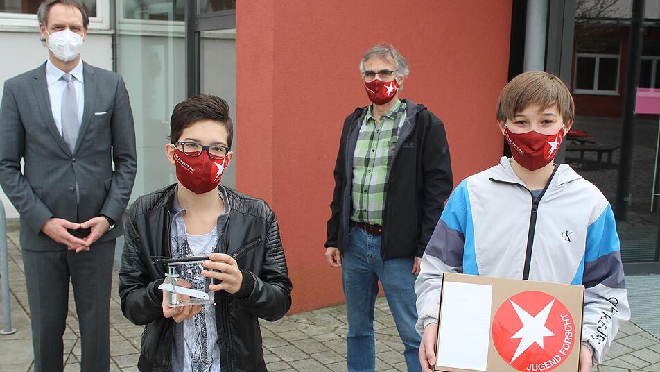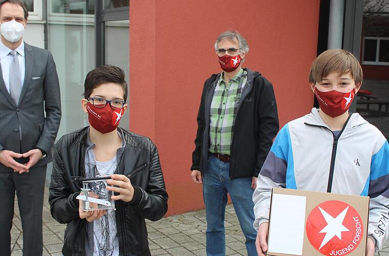Schulleiter Achim Höfle und der zuständige Lehrer Matthias Mann hoben die Leistung der beiden hervor. „Wir sind stolz, dass es ein dritter Platz geworden ist. Bei so etwas an der Stange zu bleiben, ist wichtig, aber nicht so einfach“, meinte er Schulleiter. Dem Lehrer als Ansprechpartner komme hier eine wichtige Rolle zu, der die Schüler unterstütze und motiviere. Viele würden zwar von Technik reden, man müsse jedoch die Schüler erst einmal dazu begeistern, so etwas anzugehen.