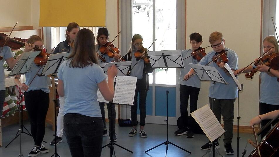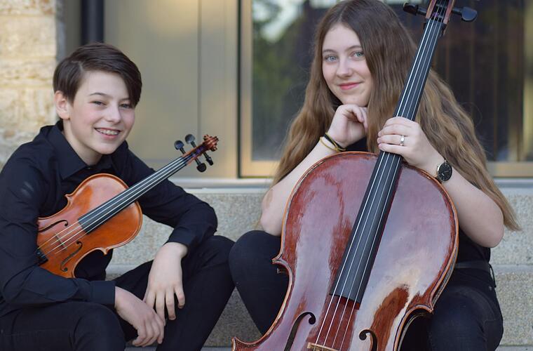 Zusammen mit dem Streicherensemble „fantastic forte“ und der Geigenlehrerin Elisabeth Marzahn kehrten Emma und Leopold Rümmele, mehrfache Jugend-musiziert-Preisträger in ihren Kindergarten St. Sebastian in Dettelbach zurück, um Kindern und Eltern eine Kostprobe ihres Könnens zu liefern. Die beiden haben laut Pressemitteilung in diesem Jahr wieder bei dem Wettbewerb „Jugend musiziert“ mitgemacht und erneut Preise gewonnen: Leopold auf seiner Geige im Regionalwettbewerb einen ersten und im Landeswettbewerb einen zweiten Preis, seine ältere Schwester Emma mit ihrem Cello im Regionalwettbewerb einen ersten und im Landeswettbewerb einen dritten Preis.