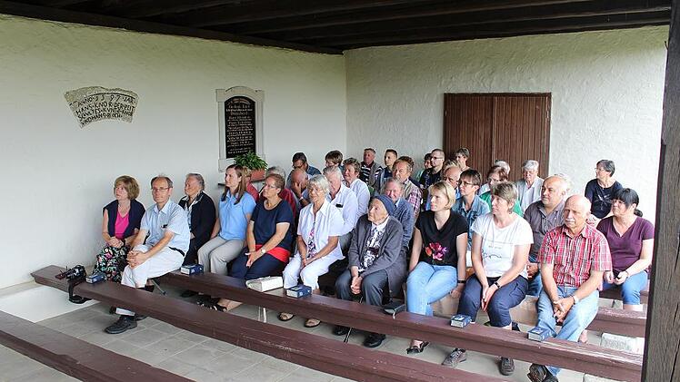 Dieses Jahr bleibt es nicht ganz trocken am Dürrnbucher Feiertag, der am Montagvormittag mit einem Gottesdienst in der kleinen, halb offenen Kapelle am Friedhof beginnt. Prädikant Siegfried Sauerbrey begrüßt dazu etwa 40 Gläubige, unter ihnen den künftigen Pfarrer Hans Gernert und dessen Frau. Im Gottesdienst erinnert Sauerbrey immer wieder daran, dass selbstverständlich ist, was wir hier auf Erden haben. Das Wetter sei stets wichtig, der Regen zuletzt sei rechtzeitig gekommen, weil sich Gott an sein Wort halte. Man dürfe nicht vergessen, für die Lebensmittel und die Landwirtschaft zu danken, mahnt er.