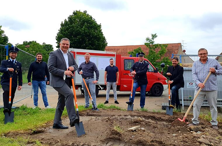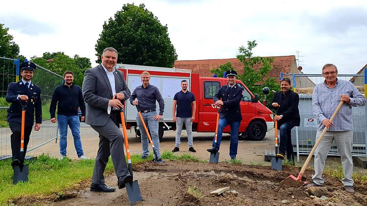 „Ich freue mich sehr, dass es nun losgeht und wir unserer Aufgabe nachkommen können, der Feuerwehr Dimbach einen zeitgemäßen Stellplatz mit Funktionsräumen zu bauen“, betonte Volkachs Bürgermeister Heiko Bäuerlein beim symbolischen Spatenstich. Die örtlichen Feuerwehren erfüllten eine wichtige Funktion und bündelten Detailwissen vor Ort, welches im Notfall mit kurzen Wegen den Bürgern zugutekomme. Wie wichtig die örtlichen Wehren seien, sei bei den aktuellen Starkregen-Ereignissen wieder deutlich erkennbar geworden, so Bäuerlein.