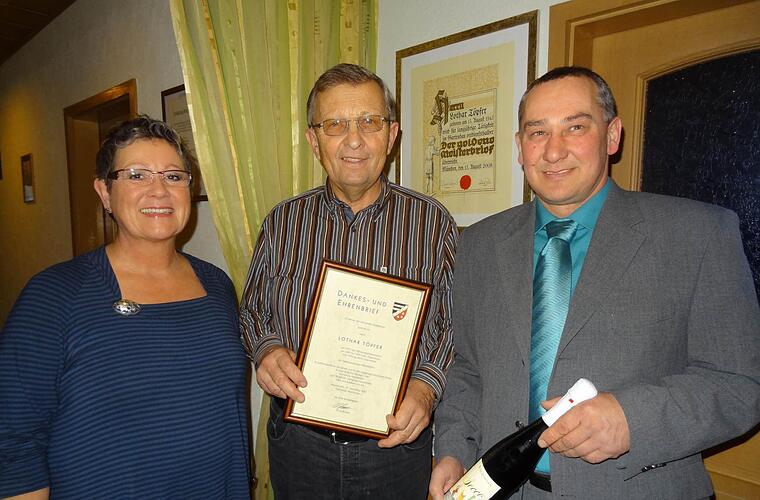 Vielfach ausgezeichnet Lothar Töpfer wurde bereits vielfach ausgezeichnet: Zu seinem 65. Geburtstag 2008 erhielt er den Goldenen Meisterbrief vom Unterfränkischen Gärtne-reiverband, 2010 nahm er eine Urkunde und die Ehrennadel in Silber für 40 Jahre verdienstvolle Tätigkeit in der bayerischen Genossenschaftsorganisation entgegen. Nun erhielt er von Bürgermeister Horst Reuther den Dankes- und Ehrenbrief der Gemeinde Albertshofen für außerordentliche Verdienste und ehrenamtliche Tätigkeit zum Wohle der Gärtnergemeinde.