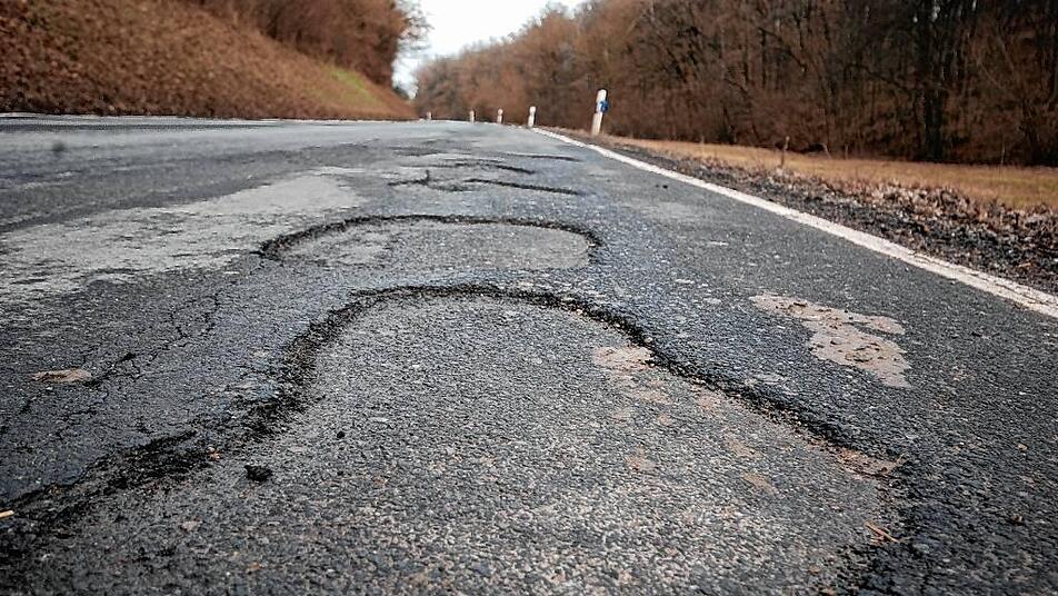 Schlaglöcher, Risse, Dellen – die Straße zwischen Kitzingen und Kaltensondheim ist marode. Das wissen die Autofahrer. Die warten aufs Ende der Stoßdämpfertests.