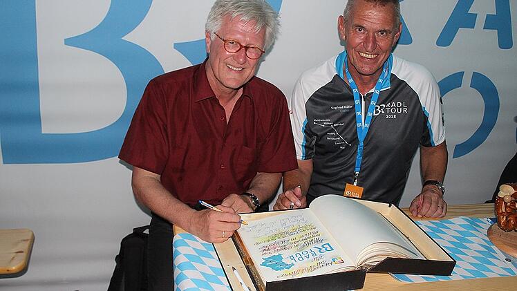 Unter die Gäste am Bleichwasen hatte sich mit Heinrich Bedford-Strohm, der Landesbischof der Evangelischen Kirche in Bayern, gemischt. Er radelte die 85 Kilometer lange Donnerstags-Etappe mit und war begeistert. „Eine schöne Gemeinschafts-Erfahrung. Es ist berührend, wie begeistert die Leute die Radler in den Orten empfangen. Es ist ein bisschen Tour-de-France-Atmosphäre, sogar Kindergärten stehen an der Straße und winken“, erzählte er. Dass man abends zusammen ist, sei wichtig und gut. Bedford-Strohm trug sich ins Goldene Buch der Stadt ein, um sich später wieder unter das Volk zu mischen.