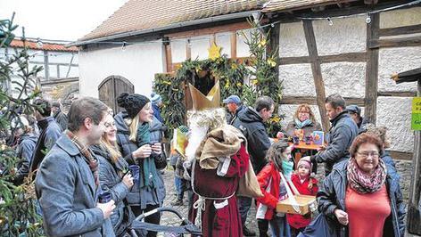 Rund um die Kirche in den Gaden gab es die Angebote oder Stärkungen für die zahlreichen Besucher. Natürlich schaute auch der Nikolaus (Eberhard Hörlin) vorbei, der in seinem Buch allerdings nur Gutes verzeichnet und in seinem Sack ein Geschenk für die Kinder hatte. Die Ministranten sammelten auch wieder für die Station Tanzbär der Mönchberg-Klinik in Würzburg. Aufgrund von Elfi Gebhardts Initiative konnten zwischen 1994 bis 2013 über 33 000 Euro für die Kinderklinik gesammelt werden.