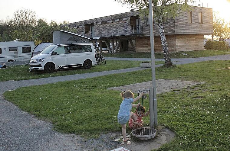 Aus der Mitte des Landkreises sind es nur 15 Kilometer, aber kaum steht der Campingbus auf dem Ankergrund, sind die Wäscheberge und ungeputzten Fenster zu Hause sehr weit weg. Die Kinder pflücken eine Runde Gänseblümchen bevor die erste Entdeckungsrunde über den Platz beginnt. Dabei wird schnell klar, warum dessen Gäste das Areal entlang des Maines seit Jahren auf dem Internetportal Camping.Info so gut bewerten: Große Stellplätze, gepflegter Rasen, ein schickes Sanitärgebäude und vom Rasenmäher-Fahrer bis zur Chefin Tanja Herlitz und ihrem Mann Alfred sind alle so fröhlich wie freundlich bei der Arbeit.