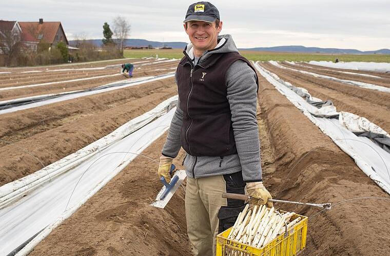 Der „Kältereiz“ zu Jahresbeginn habe mit den vergleichsweise warmen Monaten Februar und März (jeweils plus drei Grad über dem langjährigen Mittel) für einen Wachstumsschub gesorgt – „eine Woche früher wie letztes Jahr.“ Der erste Spargel, den Zieracker und seine Erntehelfer (im Bild) stechen, ist nur der Auftakt für die Saison.