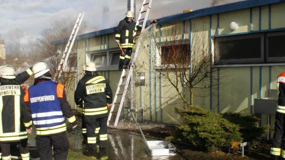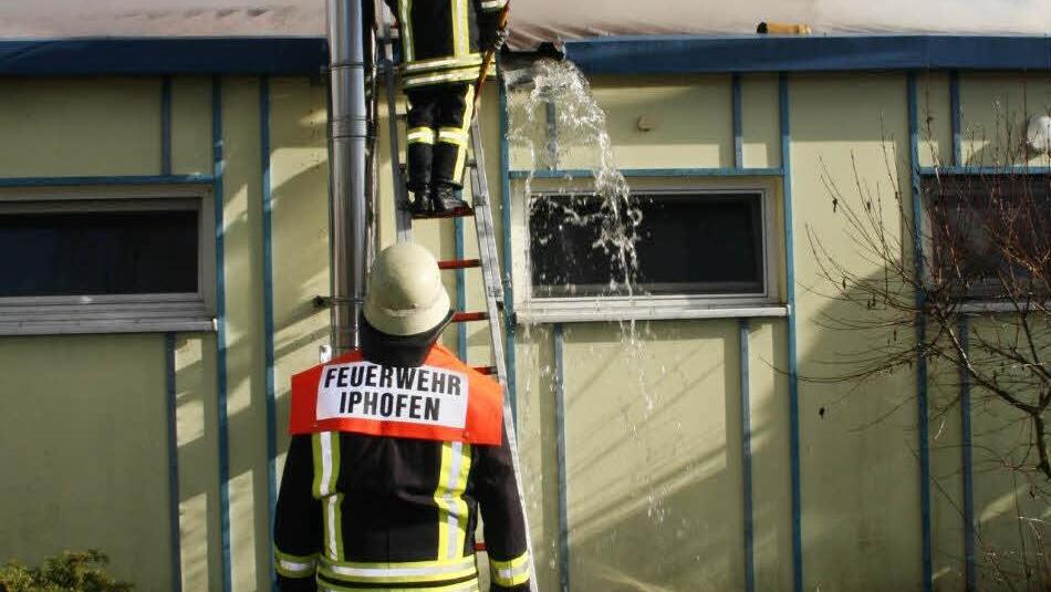 Gegen 16.50 Uhr kamen Fußballer zum Sportplatz - um 18.15 Uhr sollte ihr Spiel in Iphofen beginnen. Glücklicherweise waren die Sportler aufmerksam: "Der Kamin rauchte wie er sonst nicht raucht", stellte Rouven Faltermeier fest. Er holte den Pächter der Gastwirtschaft, Hermann Pfannes, zu Hilfe, gemeinsam wurde die Türe zum Lagerraum geöffnet. "Beim Öffnen der Türe kam uns schon schwarzer Qualm entgegen", erzählt Faltermeier. Die Männer holten zwei Feuerlöscher und versuchten zu löschen - vergeblich. Die Flammen beherrschten bereits den fensterlosen und völlig verqualmten Lagerraum.