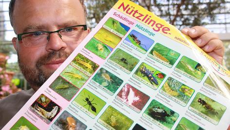 Volker Kronmüller ist gelernter Zierpflanzengärtner und Nützlingsfachmann. Sein Wissen über Schädlinge und ihre Gegenspieler, die Nützlinge, ist in der Fränkischen Toskana in Wiesentheid sehr gefragt – und kann auch dem privaten Gartenbesitzer nutzen. Während Kronmüller die Nützlinge zu Hundertschaften ordert, kann der Hobbygärtner sich mit Kleinpackungen behelfen, die zahlreiche Nützlingsfirmen anbieten.