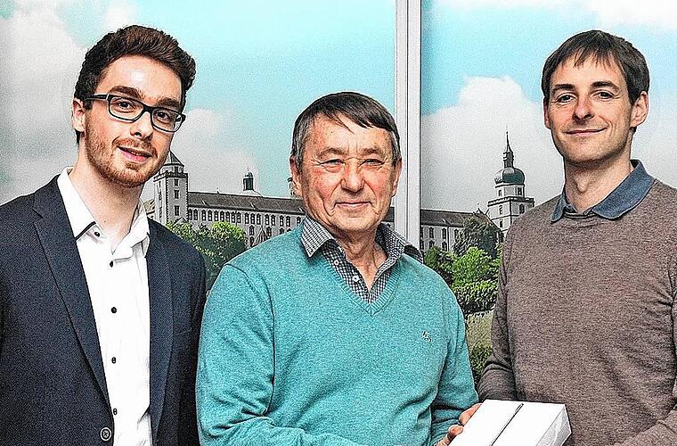 Paul Hils (Mitte) aus Kitzingen wurde beim Gewinnspiel der Serie „Heimat hat Zukunft 2016“ unter rund 600 Einsendungen als Sieger ausgelost.