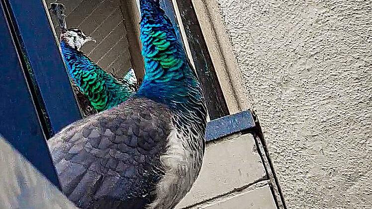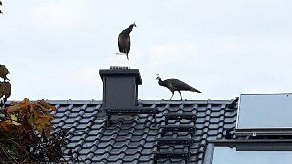 Gitti Heiligtag kann sich noch gut an den Tag erinnern: Es war ein Sonntag und sie hat mit ihren Enkeln „Mensch ärgere Dich nicht“ gespielt, als ihr Mann plötzlich ausrief: „Schaut mal, da sind zwei Pfauen im Garten.“ Im ersten Moment habe sie gedacht, ihr Mann sei verrückt geworden, gesteht sie am Telefon und muss lachen. Schnell stellte sich heraus, dass ihr Mann völlig klar bei Verstand war und ist. Die beiden Pfauen gab und gibt es wirklich. Sie sorgten im Oktober über mehrere Tage hinweg für Aufsehen in der Kitzinger Siedlung. Und tun es jetzt wieder. Mitte Oktober hat Heinz Herrenschmidt die beiden Tiere zum ersten Mal gesehen. Den ganzen Vormittag haben sie auf dem Dach des Nachbarhauses verbracht, berichtet er. Herrenschmidt wohnt in der Böhmerwaldstraße. Nicht nur dort sind die beiden Pfauen gesichtet worden. Im Internet berichten etliche Bewohner der Siedlung von Sichtungen, unter anderem in der Steigerwaldstraße. Im November und Dezember war Ruhe. Anfang Januar ging es wieder los. „Zuletzt habe ich sie am Dienstag dieser Woche gesehen“, erzählt Herrenschmidt. Früh um 8 Uhr stolzierten sie in seinem Garten umher, immer zu zweit. „Da ist es doch wahnsinnig kalt“, sagt er und sorgt sich. „Ob die bei uns überleben können?“