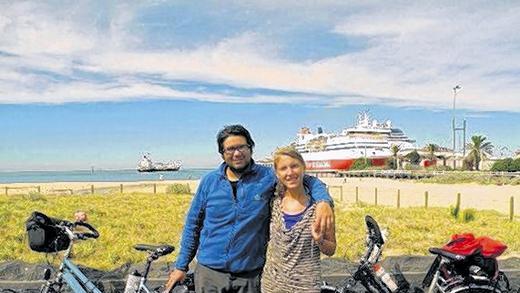 Vom Studienort Bremen über die Heimatstadt Kitzingen nach Melbourne – 830 Tage dauert die Weltreise von Annika Wachter (28) und ihrem Freund Roberto Gallegos Ricci (31) nun schon. Anfang September 2011 ging's mit dem Fahrrad hinaus in die Weltgeschichte, möglichst einmal rund um die Welt. Seit Weihnachten ist das Paar nun in Australien.