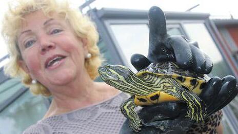 Schildkröten auszusetzen, ist streng verboten – darauf weist der Naturschutzreferent explizit hin. Die Tiere stehen unter besonderem Schutz. „Wer eine Wasserschildkröte in freier Natur entdeckt, der uns das melden.“ Die Behörde unterhält eine Datenbank, die stets ergänzt wird. Immer mal wieder kommt es vor, dass sich Tier und Besitzer aufgrund der Registrierung wiederfinden. „Darauf hoffe ich auch“, sagt Beate Zepter und blickt „Nixe“ hinterher, die nach dem Fototermin blitzschnell wieder abtaucht.