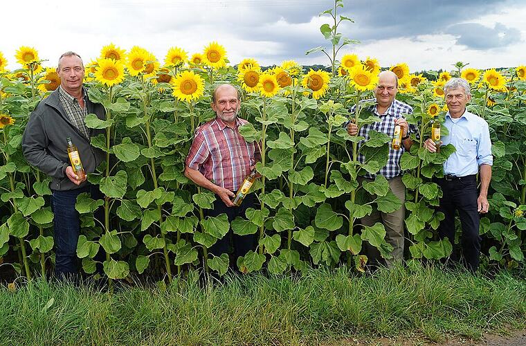 Und da ging es zunächst gar nicht um Speiseöl, sondern um den Einsatz von Sonnenblumenöl im industriellen Bereich. Seit 2002 wird das Öl auch als Speiseöl angeboten. „Das Öl ist hitzebeständig, oxitationsstabil und gesund“, zählt Schaller auf. Die leuchtend gelbe Farbe hat es seinem hohen Vitamin E-Gehalt zu verdanken. Die Landwirte sind inzwischen Fachleute in Sachen Sonnenblumenöl geworden: „Man schmeckt den Jahrgangsunterschied“, sagt Rudolf Schaller – wieder eine Gemeinsamkeit mit dem Wein.