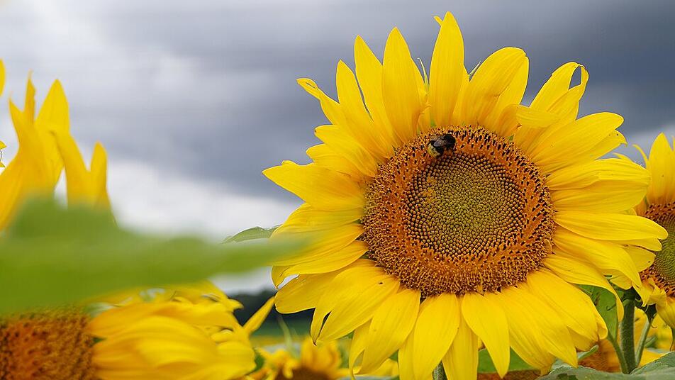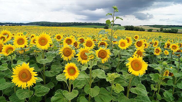 Sehen, hören, schmecken: Die Sonnenblumen im Raum Kitzingen erfreuen die Sinne auf vielfache Art. Die leuchtend gelben Blütenblätter setzen in diesen Tagen bunte Farbtupfer in die Landschaft, die riesigen Köpfe werden von brummenden und summenden Insekten umschwirrt. Und schon in wenigen Monaten entsteht aus den Kernen ein gesundes Öl.