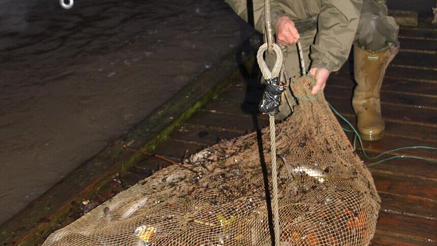 Drei so genannte Schokker hat sich Detlef Greiner gekauft, Schiffe, die ursprünglich aus den Niederlanden stammen und über eine ausschwenkbare Vorrichtung verfügen, an denen die Netze zum Fischfang angebracht sind. Vom Schokker aus rettet er im Auftrag des Kraftwerkbetreibers Uniper unzählige Aale vor dem sicheren Tod. „Catch&Carry“ nennt sich das Projekt, das 2010 ins Leben gerufen wurde. Zuvor waren die Aale in den Turbinen der Kraftwerke teilweise förmlich geschreddert worden.