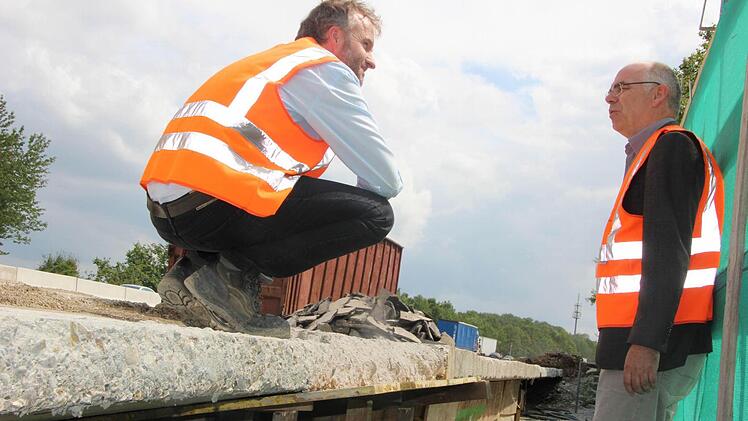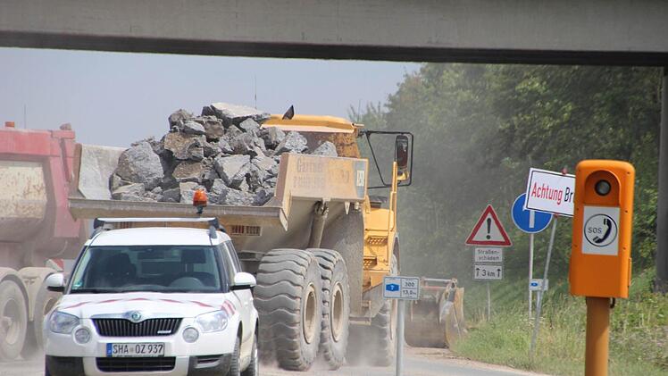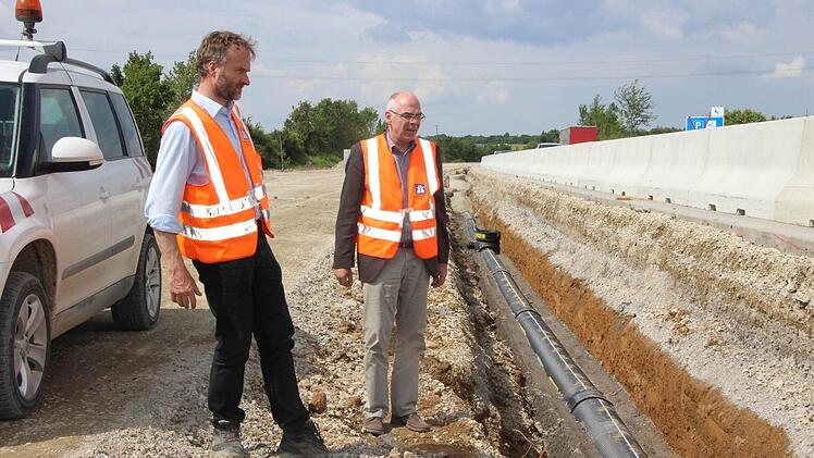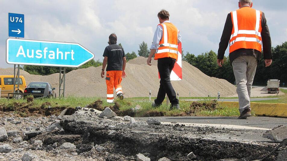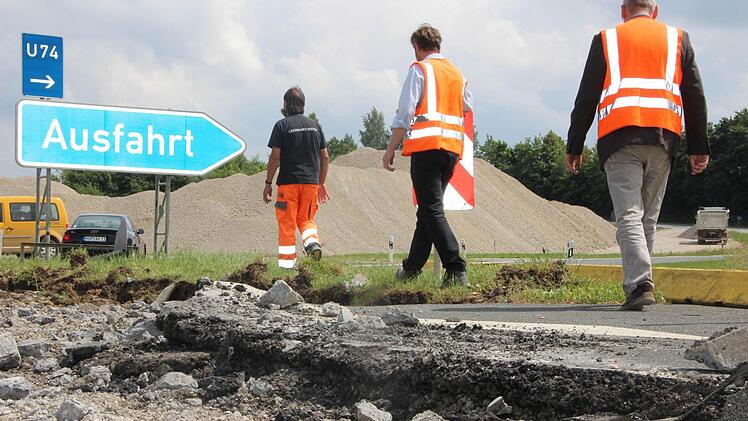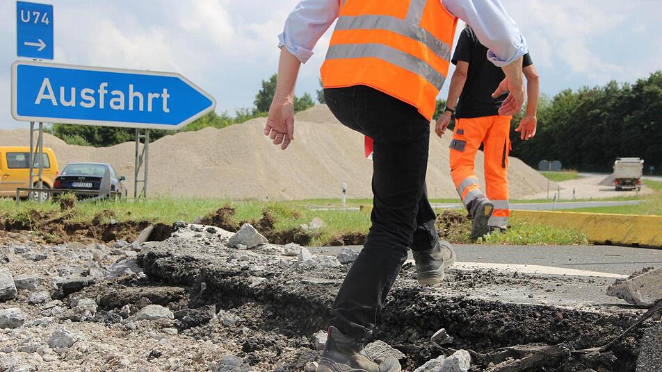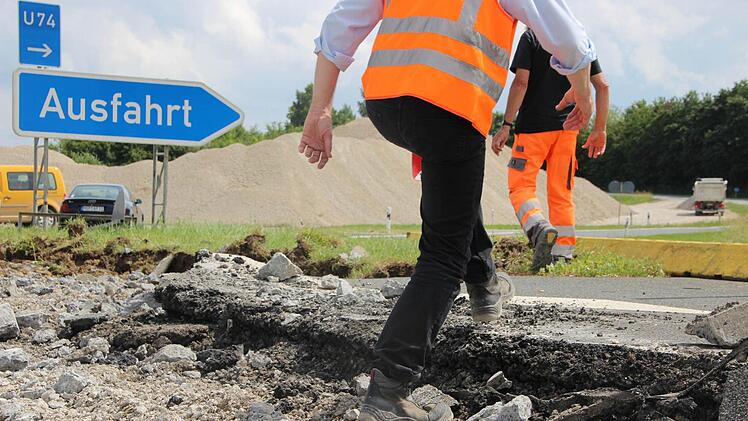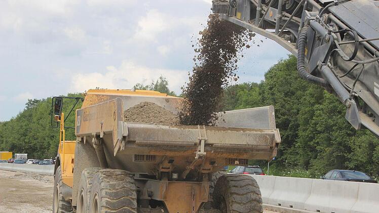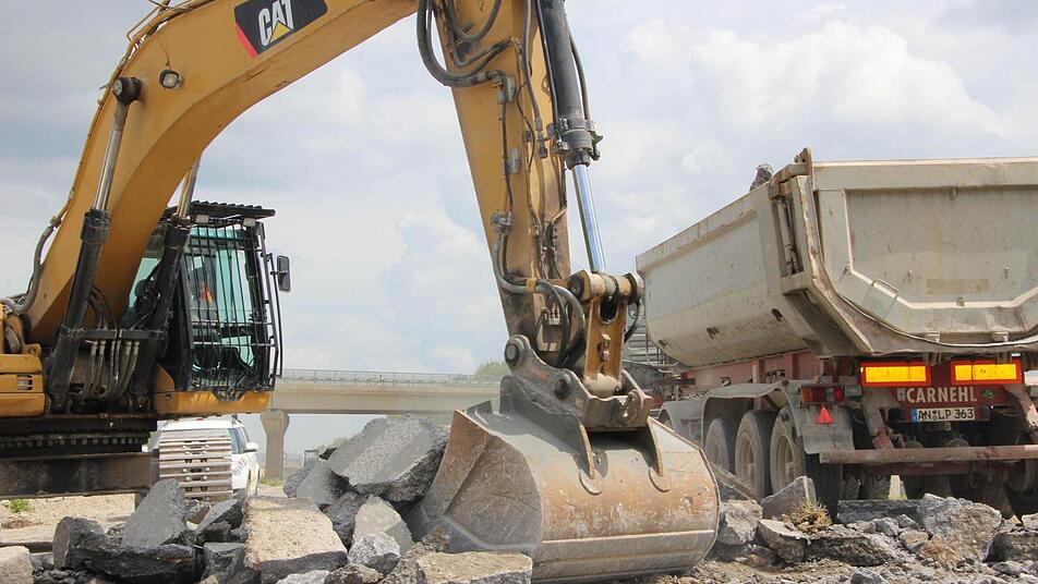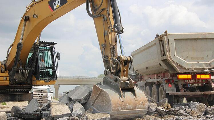 Es ist heiß, staubig und ohrenbetäubend laut. Trotzdem hat Jens Ehmke auf der Autobahn-Baustelle richtig gute Laune. Der Würzburger Dienststellenleiter der Autobahndirektion Nordbayern brüllt leidenschaftlich gegen den Lärm eines riesigen Baggers an, der soeben dicke Brocken der alten Betondecke auf einen Laster knallen lässt. "Das Schöne am Erdbau ist: Es kann chaotisch aussehen, ist aber immer logisch und durchdacht."
