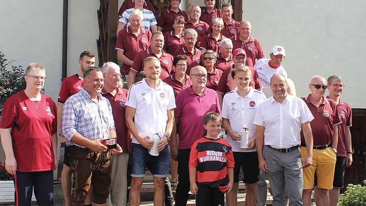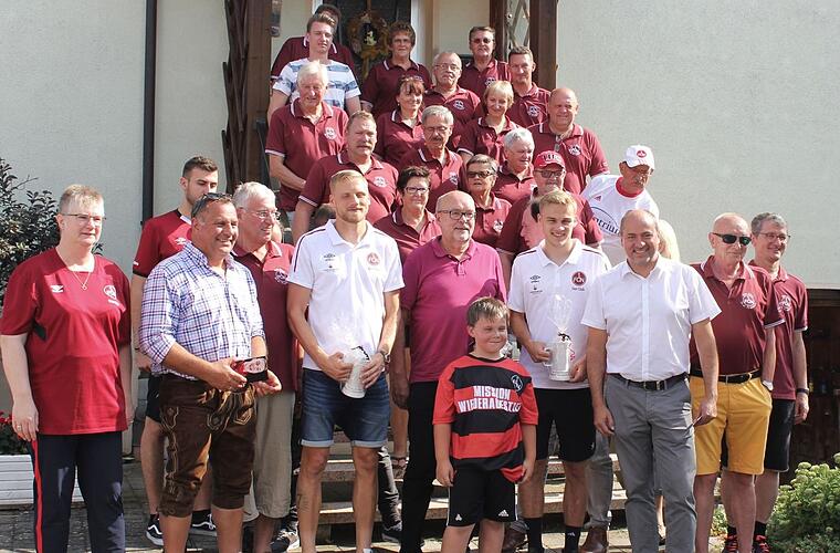 Der FCN-Fanclub "Drei Franken" feierte, laut Pressemitteilung, sein traditionelles Sommerfest. Highlight des Treffens war der Besuch der Lizenzspieler vom FC Nürnberg Tim Handwerker, Hanno Behrens sowie Aufsichtsratsmitglied Norbert Gunkler. Bei der Aktion "Der Club schwärmt aus", konnte der Drei Franken Fanclub vorgenannte für sich gewinnen. Der Fan-Club besteht aus Mitgliedern des Bezirks Oberfranken (Aschbach/Schlüsselfeld), Unterfranken (Geiselwind) und Mittelfranken (Burghaslach). Das Fest fand im Anwesen des ersten Vorsitzenden Karl-Heinz Krieger in Gleißenberg statt. Die große Teilnehmerzahl ergab sich auch durch Anwesende des Fan-Clubs aus Warmersdorf, Burghaslach und Lonnerstadt sowie der Fan-Beauftragten Heike Joos aus Schallfeld. Zu Gast waren auch Bürgermeister aus drei Gemeinden: Armin Luther (Burghaslach), Johannes Krapp (Schlüsselfeld) und dritter Bürgermeister Siegfried Hummele.