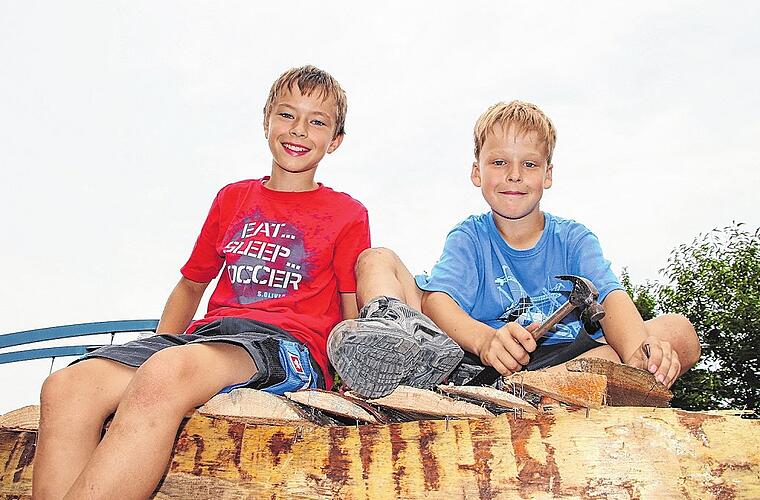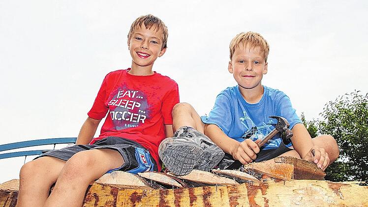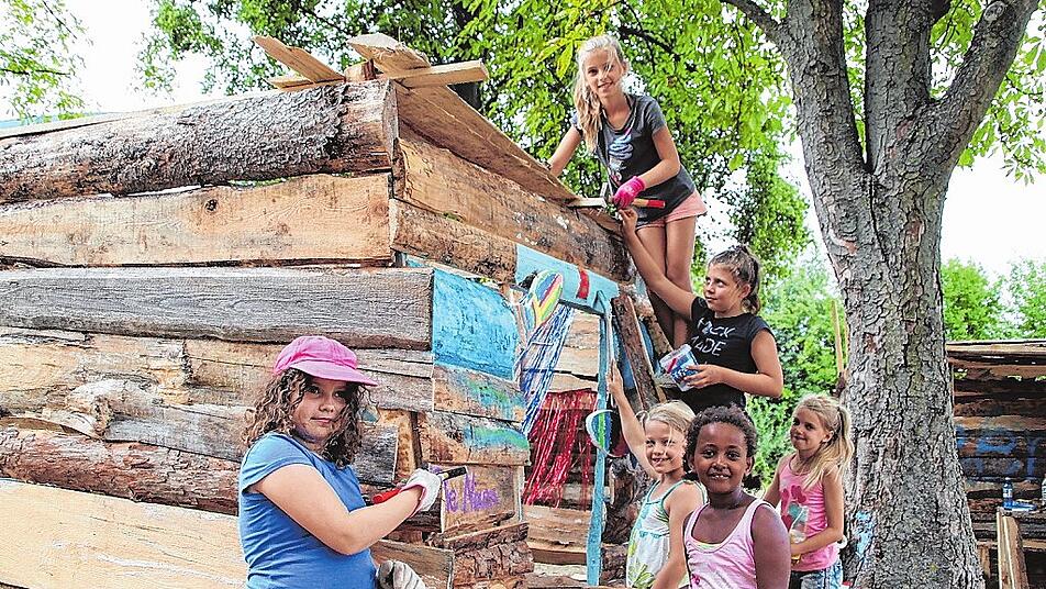 Manche waren so eifrig dabei, dass sie sich schon vor der Aktion überlegt hatten, wie ihre Hütte aussehen sollte. Die Kinder nahmen das Sägen und Hämmern in die eigenen Hände, unterstützt von den Betreuern, erklärte Sozialpädagogin und Organisatorin Hanna Leimig.