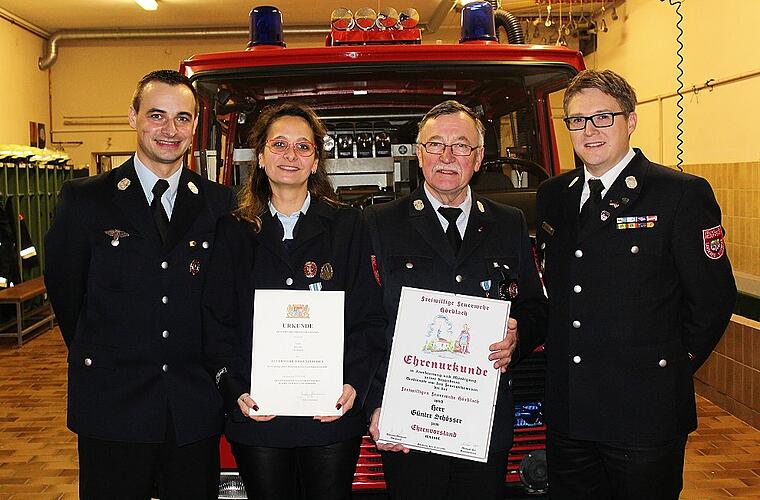 Mit Ingrid Ort, Horst Filbig und Hella Schösser verabschiedete der Kommandant drei Kameraden aus dem aktiven Dienst. Simon Söder und Elias Kleinhans stoßen aus der Jugendwehr zu den Aktiven. Damit hat die Wehr 27 Aktive in ihren Reihen, darunter fünf Frauen. Die Wehr hat fünf Gruppenführer, vier Maschinisten und vier Atemschutzgeräteträger.