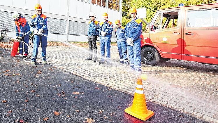 In der Übung, die von Wagner und seinem Kollegen Thomas Morche, ebenfalls Lehrer, geleitet wird, wird Unterschiedliches trainiert. Zum einen üben die Schüler Theoretisches, um im Wissenstest zur Ausbildung gut abzuschneiden. Zum anderen proben sie selbstverständlich auch praktisch: Hydranten bedienen, schnellstmögliches Anschließen der Schläuche, mit dem Wasserstrahl treffsicher aufs „Feuer“, beziehungsweise den Tennisball auf einer Pylone, zielen.