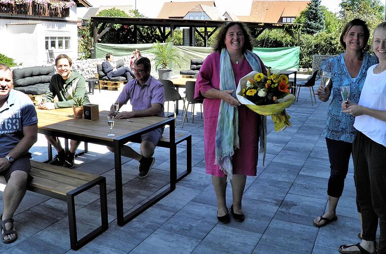 Voll des Lobes war Sommerachs Bürgermeisterin Elisabeth Drescher (Mitte) bei der Neueröffnung des früheren Pizzagartens "Gräfners Fuhrwerk". Nach eineinhalbjähriger Bauzeit sei mit Herzblut ein Unternehmen entstanden, auf das man in Sommerach gewartet habe.