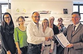 Die Volkacher Firma Steueroptik hat die Zertifizierung von TÜV Süd Management Service GmbH erfolgreich mit der Bestnote „sehr gut“ für Kundenzufriedenheit bestanden. Zwei Jahre darf das Optikergeschäft laut Mitteilung das TÜV-Prüfsiegel für geprüfte Kundenzufriedenheit verwenden. Die Zertifizierung hat das Unternehmen Carl Zeiss Vision angeregt. Damit können die Partnergeschäfte – sie nennen sich Relaxed Vision Center – nach einer Kundenbefragung deren Zufriedenheit durch den TÜV bestätigen lassen. Denn der Verkauf einer Brille sei Vertrauenssache, sagte Steueroptik-Inhaber Gerhard Mahler. Auch Volkachs Bürgmeister Peter Kornell (rechts) gratulierte zur Auszeichnung. Foto: Steueroptik