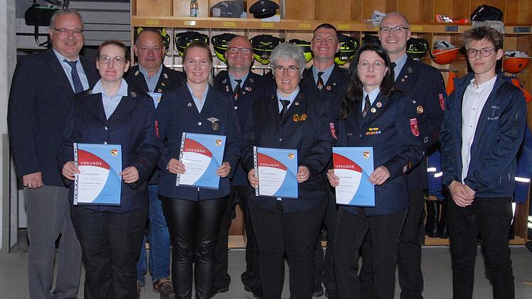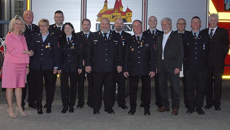 Kommandant Stefan Melber hielt die Laudatio auf Florian Lenzer, Frank Meier und Stefan Waldow und Tamara Bischof verlieh ihnen nach 25 Jahren Dienstzeit das staatliche Feuerwehrehrenzeichen in Silber. Vom Vorsitzenden Thomas Stegmeier bekamen Michael Pfeuffer, Florian Lenzer, Stefan Waldow und Frank Meier die silberne Vereinsehrennadel. Stegmeier ernannte außerdem Herbert Heckel, Ernst Lenzer, Arthur Melber, Hermann Neubert und Roland Mark für ein halbes Jahrhundert Mitgliedschaft im Verein zu neuen Ehrenmitgliedern.