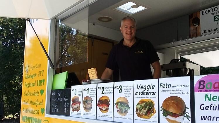 In Sichtweite der Kirche können die Besucher sich am kommenden Wochenende, 8. und 9. August, sowie an den beiden letzten August-Wochenenden je von 11 bis 18 Uhr so genannte Baags schmecken lassen. Baags sind vollwertige Speisen in einem ganz speziellen, saftigen Dinkelteig. Dieser kann ganz verschieden belegt oder gefüllt werden: mit Rindfleisch, Putenbrust, Käse, Gemüse, Ratatouille, Salat und Sprossen. Illhardt legt Wert darauf, dass die Lebensmittel im "Jillbaag Food-Truck" von Anbietern aus Franken kommen und dass Umverpackungen bestmöglich vermieden werden.
