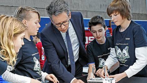 Karl Kleylein, Schulleiter der der Wolffskeel-Realschule freut sich über die rege Teilnahme. „Die Schüler sind unheimlich heiß auf Roboter, die Nachfrage nach entsprechenden Wahlfächern ist immens.“