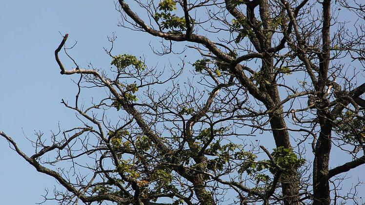 "Das ist normalerweise kein Problem für die Eiche." Jetzt habe aber die Häufigkeit zugenommen, erklärt er. Vor vier Jahren schlugen die Schädlinge immer wieder zu. Dazu kam noch der Eichen-Mehltau. Der Blattpilz siedelt sich auf den Blättern an, der Baum kann die Sonne nicht mehr gut einfangen. Der Stoffwechsel des Baumes wird beeinträchtigt. Auch der Standort ist entscheidend, wie die Landesanstalt für Wald und Forstwirtschaft (LWF) untersucht hat. Ist der Boden "staunass", bekommt die Wurzel nicht genug Luft. "Ein zusätzlicher Stressfaktor für den Baum", sagt Renz. Nach dem Blattfraß kann er sich nur schwer wieder erholen.