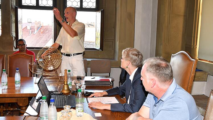 Einmal im Halbjahr regiert die Glücksgöttin Fortuna im Dettelbacher Rathaus, denn dann werden städtische Baugrundstücke verlost. Es hatte denn auch einen Hauch von Ziehung der Lottozahlen, als der Geschäftsleitende Beamte Rigobert Pfister in der Sitzung des Stadtrats am Montag fünf Kugeln durch den Ziehungsapparat rotieren ließ. Es ging diesmal um Grundstücke im Baugebiet Am Reusenberg II in Schernau. Gezogen wurden die Kugeln in der Reihung: 2,4,1,5 und 3. Wer sich von den Bauwilligen über das Losglück freuen darf, wurde in der Sitzung nicht verraten. Sie werden von der Stadtverwaltung benachrichtigt.