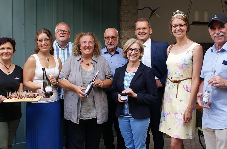 Gästeführerin Beate Fiala führte die gut 30 Teilnehmerinnen und Teilnehmer mit Witz und Wissen durch den Weinort zu den verschiedenen Stationen, an denen die Teilnehmer die Vielfalt der Zwetschge in Begleitung mit Wein schmecken konnten: süße Plunderteilchen, Gelee und Marmelade, Bratwurst mit Zwetschgensenf oder Ketchup, Zwetschgenlikör, Balsamico oder auch Pralinen. Die geschmackliche Vielfalt und die zahlreichen Ideen, wie man mit der Zwetschge Produkte verfeinern kann, beeindruckten die Teilnehmenden, zumal alle Produkte zu 100 Prozent in Franken produziert werden.