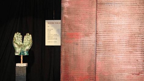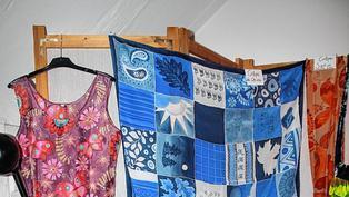 Von Acryl- und Kreidegemälden, Papier-, Kupfer-, Glas- und Dreharbeiten bis zu Seidenschmuck und -tüchern, Schützenscheiben und einer Einersheimer Tracht ist alles vertreten. An einer Säule hängen die kleinen Bilder von den Kindergarten-Kindern zum Thema Jahreszeiten und im Treppenaufgang die preisgekrönten Werke aus der Grundschule. Mit einigem Aufwand entstand die großflächige und mehrteilige Installation von Albrecht Schoppa zu den Themen „Rotes Tuch“, Hände und Punta San Vigilio, in Beton- beziehungsweise Bleiguss, Kupfer, Stahl und Acryl.