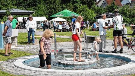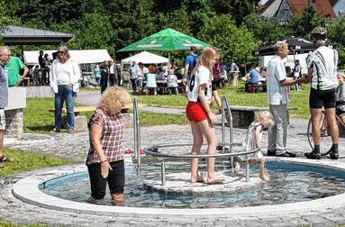 Natürlich waren es die Kinder, die am Sonntagvormittag als erstes das neue Kneipp-Becken und den Wasserspielbereich am Dettelbacher Mainufer eroberten.