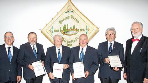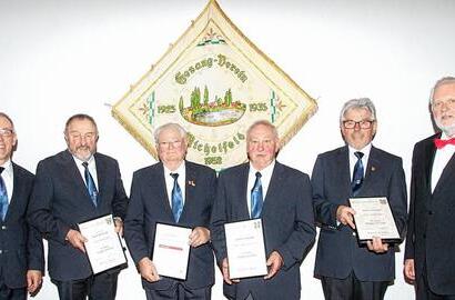 Fritz Schweigert kam mit 24 Jahren zu den Sängern und war jahrelang Stellvertreter des Vorsitzenden. Erwin Röder hat sich als Mitglied des Vereinsausschusses einen Namen als Organisator gemacht. Ehrenvorsitzender Walter Götz diente den Sängern lange Jahre als Vorsitzender und war der Schöpfer der „Fahrt ins Ungewisse“. Hermann Hösch war bereits in jungen Jahren in den Chor eingetreten, musste aber später berufsbedingt eine Pause einlegen. Er ist dann als Rentner wieder zum Chor gestoßen. Jubilar Hösch gilt als eine Stütze der Geselligkeit im Chor.