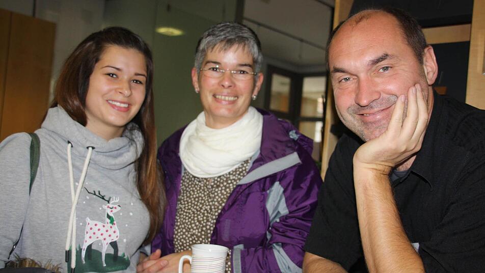 Der Duft nach frisch gebrühtem Kaffee, Gebäck und leckeren Martinsgänsen aus Mürbteig durchzog am Sonntagfrüh die Räume der KITZINGER in der Herrnstraße 10 bis 12/ Eingang Schweizer Gasse. Die Redakteure Nina Grötsch (links im Bild), Diana Fuchs und Redaktionsleiter Ralf Dieter (Bild rechts, hinten Mitte) freuten sich über viele anregende Gespräche mit den Lesern. In gemütlicher Runde entstand so manche gute Diskussion. Die Gäste konnten sich von Nico Schraut fotografieren lassen und ihr Bild auf eine Titelseite der Zeitung montieren lassen. Erfreulichen Zuspruch erhielten auch die Martinsgänse, die ein Leser-Team eigens zum Redaktionsfrühstück in der Volkacher Bäckerei Kohler gebacken hatte; der Erlös aus dem Verkauf, der diese Woche noch in der Geschäftsstelle der KITZINGER in der Schweizer Gasse weiterläuft, geht an das Erich Kästner Kinderdorf Markt Einersheim.