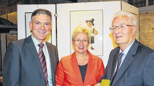 Schweren Herzens verabschiede er den langjährigen VBW-Chef, betonte Bürgermeister Peter Kornell. Mit einem weinenden aber auch einem lachenden Auge vollziehe er die Ruhestandsversetzung, denn mit Susanne Holst-Steppat habe man eine kompetente Nachfolgerin gefunden. Kornell attestierte Meyer großartige Arbeit für Kultur und Heimatforschung. Neben dem VBW in Kitzingen habe Volkach das einzige selbstständige VBW im Landkreis. Klaus Schemmerling vom Bayerischen Volkshochschulverband, Bezirk Unterfranken, verlieh dem scheidenden VBW-Leiter in Anerkennung seiner Verdienste die Goldene Ehrennadel des Verbands. Die Auszeichnung sei in Unterfranken erst viermal verliehen worden, betonte Schemmerling deren Bedeutung. „So viel Freizeit für dieses Ehrenamt abzuzwacken, sei eine hoch anzuerkennende Leistung“, würdigte der Mellrichstädter Meyers Einsatz. Mit Blumen und lobenden Worten dankten Gabriele Thimm und Gerlind Zick in Vertretung aller ehemaligen und aktuellen Referenten Meyer für die gute Zusammenarbeit und bewährte Organisation.