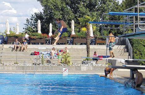 Unter den Besuchern sind an dem Tag auch viele Urlauber. Ingo Niehaus ist mit seiner Familie aus dem Münsterland für zehn Tage nach Kitzingen angereist. Er hat in der Vergangenheit ein Jahr lang für ein Kitzinger Unternehmen gearbeitet. Weil es seiner Frau und den beiden Kindern hier so gut gefallen hat, haben sie sich für diesen Sommer Mainfranken als Urlaubsregion ausgesucht. Neben Besuchen bei Freunden aus der Zeit in Kitzingen bleibt auch Zeit für einen Besuch im Bad. Dem neunjährigen Sohn Kai gefällt dabei das Springen vom „Fünfer“ am besten.