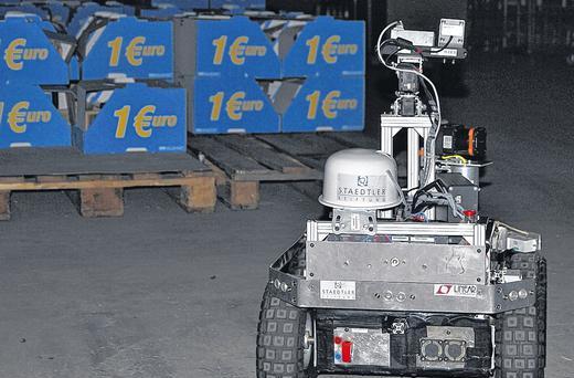 Am Einsatzort angekommen, startete Roboter Georg mit der Erkundung der Lagerhalle. Mittels Lasersensorik kartierte er die Lagerhalle und suchte über eine Thermokamera nach Wärmequellen, wie sie typisch sind für verletzte Menschen. Mittels CO2-Sensor, Mikrofon und Kamera werden diese dann analysiert und als Opfer in die Karte eingetragen. Anhand dieser können die mit schwerem Atemschutz ausgestatteten Rettungskräfte zielgerichtet zur Personenrettung vorgehen. Während Georg den Gefahrenbereich durchsuchte, hielt sich die Person mit der Steuerung im Sicheren auf. Ziel ist es, zukünftig die Suchaufgaben dem Roboter zu überlassen, so dass die Rettungskräfte weniger Gefahren ausgesetzt werden müssen und die durch Georg eingesparte Zeit für andere Aufgaben nutzen können.