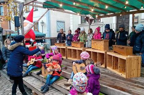 Beim Adventsmarkt stellte die Drei-Franken-Grundschule ihr WIM-Projekt (Wir musizieren) vor, das mittlerweile im vierten Zyklus den Erst-und Zweitklässern angeboten wird.