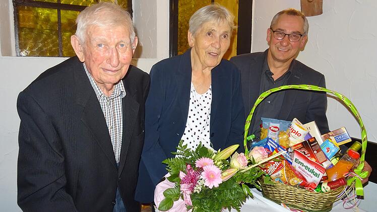 Sechs Jahrzehnte gemeinsam durch das Leben – das Fest ihrer Diamantenen Hochzeit feierten Marianne und Willi Hartmann am Donnerstag im Kreise ihrer Familie in Albertshofen. Bürgermeister Horst Reuther gratulierte dem Jubelpaar mit einem Präsentkorb von der Gemeinde.