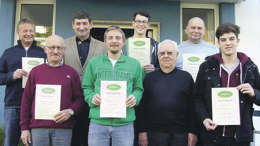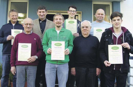 Für 50 Jahre Mitgliedschaft wurde Franz Bock geehrt; 45 Jahre dabei sind Arthur Gast und Rudolf Schmitt; 40 Jahre hält Ferdinand Scheller dem Verein die Treue und seit 35 Jahren sind Adolf Eck, Siegfried Nagel und Klaus Ziegler Mitglied; auf 30 Jahre blickt Hartmut Öder zurück.