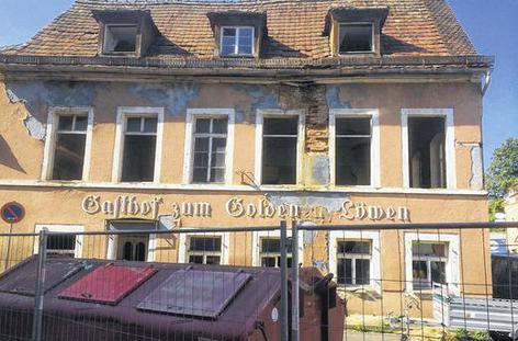 Der Niedergang des einstigen Traditionslokals war Ende Juli so deutlich, dass die Stadt das Straßeneck am Goldenen Löwen sperrte. Wenige Tage später ließ der Bauherr das Haus ausräumen. Danach regierte wieder der Stillstand.