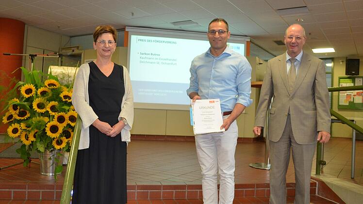 Die Vorsitzende des Fördervereins, Frau Anja Böhm, ehrte zwei weitere Absolventen, die besondere Herausforderungen meisterten. Sie erhielten den Preis des Fördervereins für gelungene Integration.