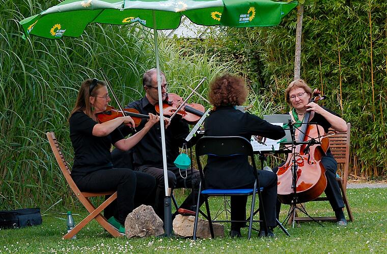 Hansen war stellvertretend für den Kitzinger Direktkandidaten Nicolas Lommatzsch eingesprungen, da dieser tags zuvor Vater geworden war, wie es im Presseschreiben noch heißt. Für die musikalische Umrahmung sorgte ein eigens zusammengestelltes Streichquartett. Ortsverbandssprecherin Eva Trapp führte durch den Abend und zeigte sich mit der Resonanz des politischen Mitbring-Picknicks zufrieden.